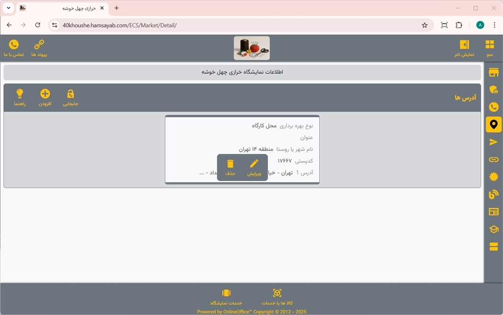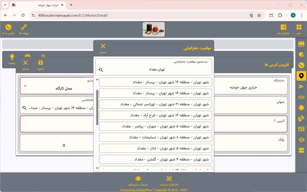 مدیریت آدرس‌های نمایشگاه در سایت همسایاب