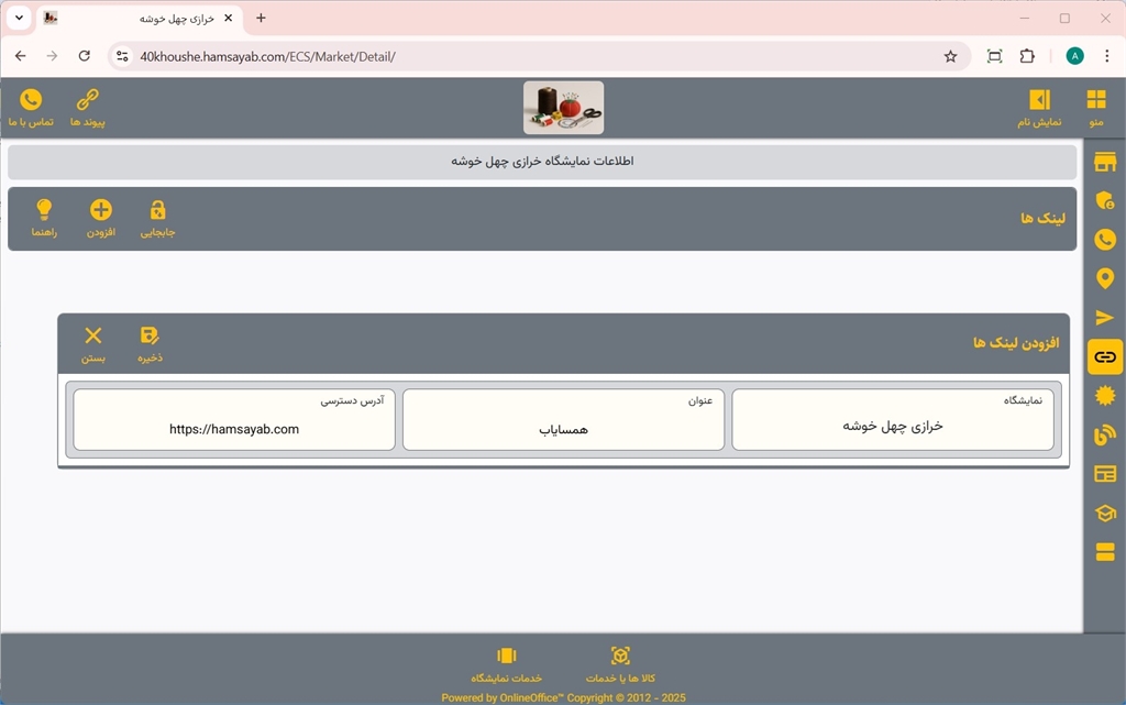 مدیریت لینکهای نمایشگاه در سایت همسایاب
