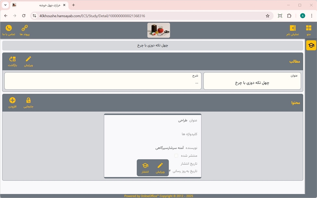برای ویرایش، انتشار یا عدم انتشار محتوای مطالب آموزشی بر روی دکمههای مربوطه کلیک نمایید.