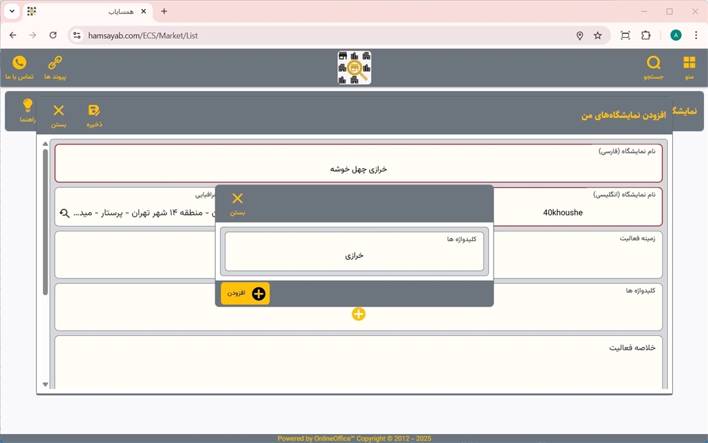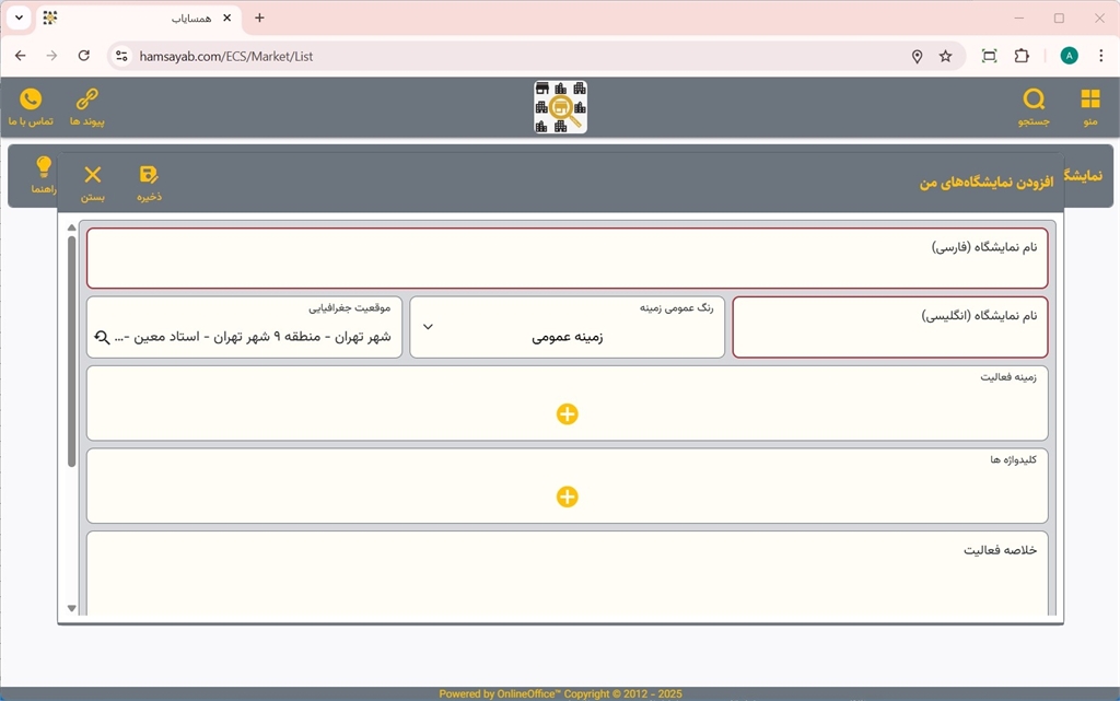 برای افزودن نمایشگاه بر روی دکمه افزودن کلیک نمایید.